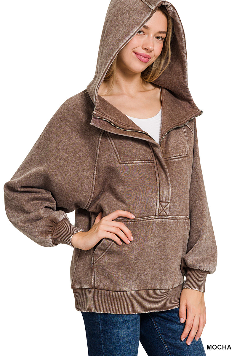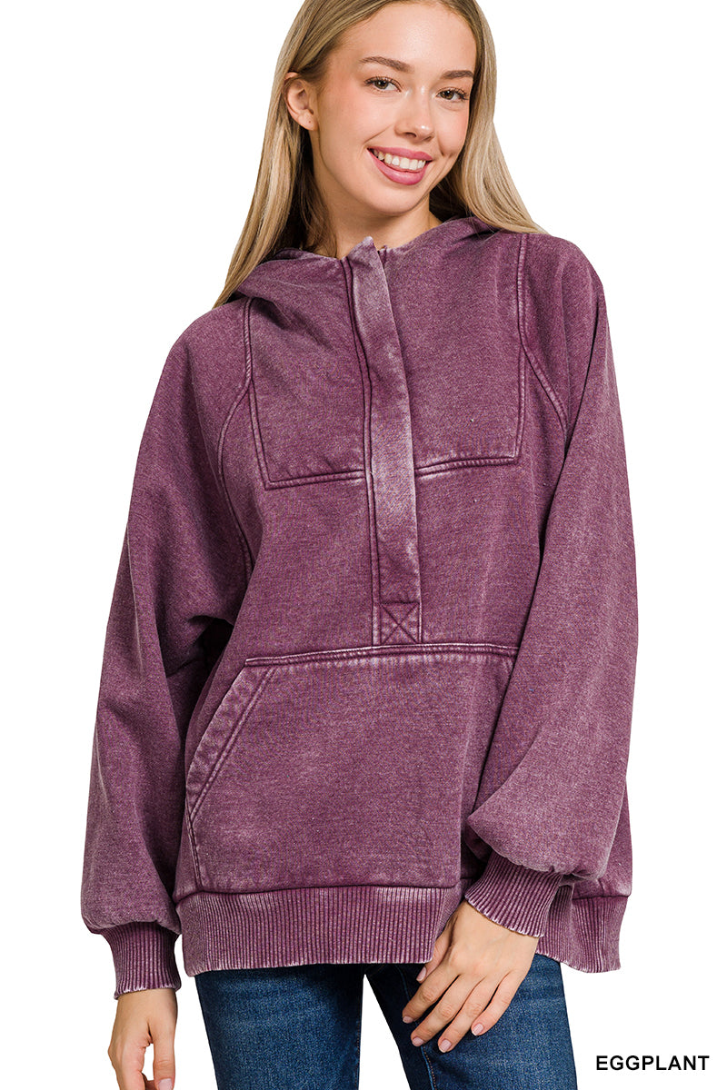 We love a good hoodie when the weather gets chilly and this acid washed hoodie does not disappoint.  Oversized fit, half zip front, kangaroo pocket, and so warm and cozy!